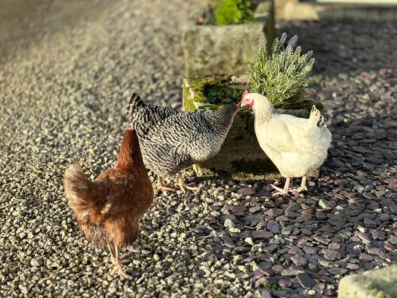A busy little crew who patrol the grounds and keep us supplied with fresh eggs. Children love to help with the afternoon corn.