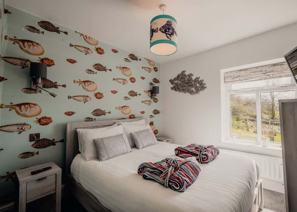 Make your way upstairs where you will find three sumptuous bedrooms which all have en suites, and are all kitted out with everything you need for that authentic home from home experience including smart TV’s, fluffy bathrobes, hair straighteners and hair dryers in every room, on this floor you can also enter through the gnome door into the gaming den which has a PS4 and gaming chairs, on the top floor you will find the master suite, luxury at its finest featuring a king size bed, smart TV and a show stopping en suite.