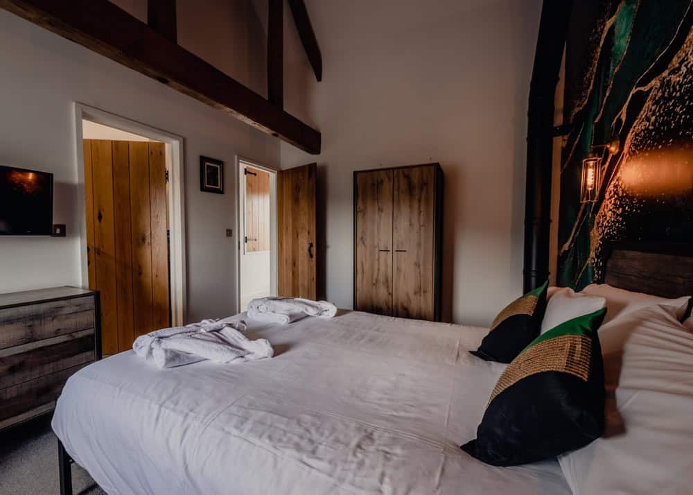 Retire to one of the three well-presented bedrooms, all with their own TV’s they comprise of: two king-size, one with an en-suite shower room and one twin with zip/link features, able to accommodate all types of groups wishing to stay here.